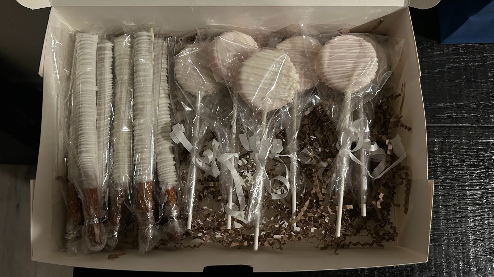 Chocolate-covered Pretzel Rods and Cake Pops Box